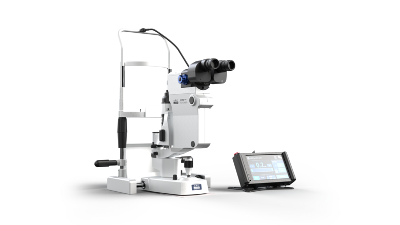 More specifically, it is an ophthalmic frequency-doubled laser (generation of the second harmonic) that works with µ-Chip technology.