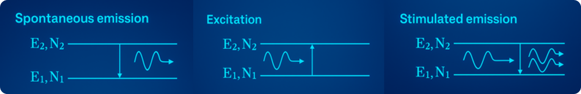 The operation of a laser is fundamentally based on the phenomenon of stimulated emission, which is preceded by a process known as pumping. This involves exciting the atoms or ions in the active medium using an external energy source, in order to achieve a population inversion. This condition is met when there are more charges in the excited state than in the ground state.